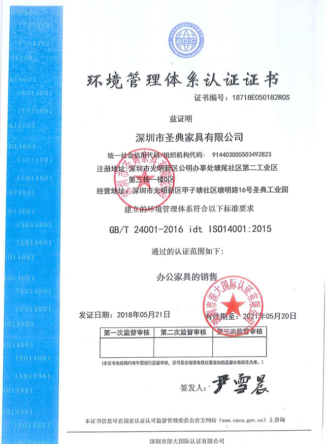 環境管理(lǐ)體(tǐ)系認證證書